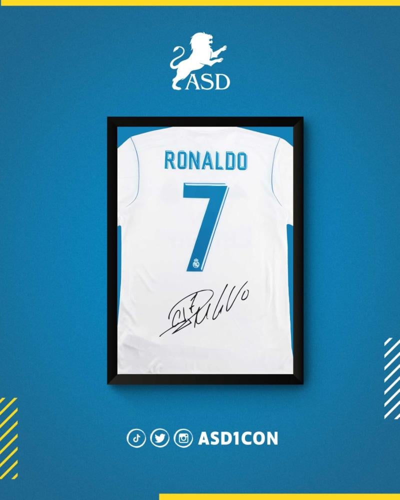 تيشيرت ريال مدريد موقع من رونالدو داخل اطار - 50*40 سم